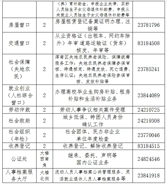 渾南區(qū)政務(wù)服務(wù)大廳業(yè)務(wù)范圍及咨詢電話:
