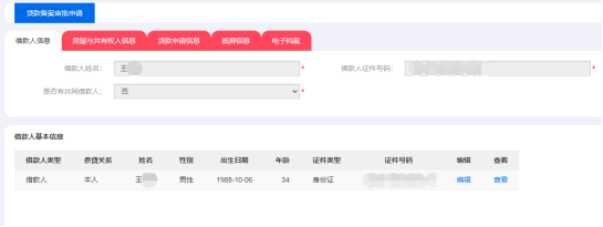待下方列表顯示錄入的借款人信息后點(diǎn)擊【編輯】對(duì)借款人信息進(jìn)行補(bǔ)充修改;點(diǎn)擊【查看】核實(shí)借款人的相關(guān)詳細(xì)信息,編輯效果如下圖所示: