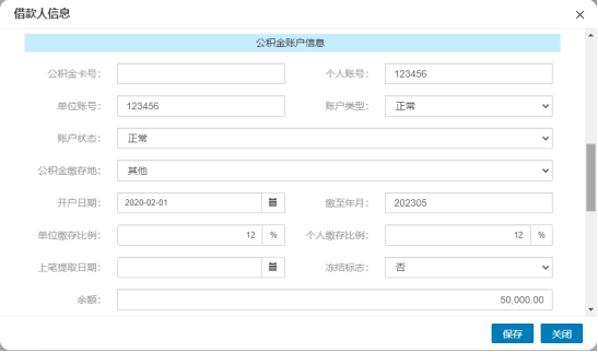 非本市繳存的借款人在補(bǔ)充信息時(shí)公積金信息如【余額】、【賬戶狀態(tài)】需要一并補(bǔ)充,如下圖所示:
