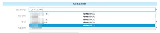 借款人信息錄入完畢后點(diǎn)擊左上角進(jìn)入【房屋與共有權(quán)人信息】頁(yè)簽錄入貸款房屋信息,根據(jù)實(shí)際情況選擇首套房貸款或第二套房貸款,借款人是首套房貸款的【第N套房】列表選項(xiàng)應(yīng)選首套房;是二套房貸款的【第N套房】列表選項(xiàng)應(yīng)選二套房;系統(tǒng)默認(rèn)顯示為首套房,經(jīng)辦人根據(jù)實(shí)際情況選擇正確的選項(xiàng)。【項(xiàng)目協(xié)議號(hào)】處經(jīng)辦人錄入自己負(fù)責(zé)的開發(fā)商項(xiàng)目協(xié)議(支持協(xié)議模糊查詢?nèi)缦聢D所示)