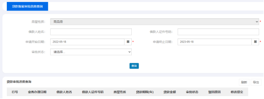 單擊【信息查詢】下的【開發(fā)商貸款審批備案查詢】子菜單進(jìn)入如下所示頁(yè)面: