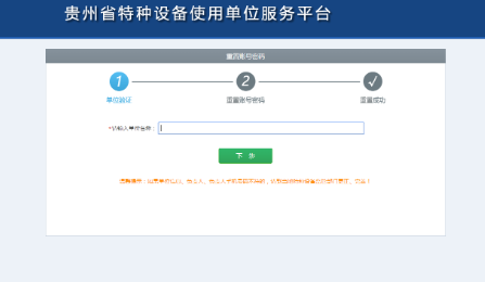 用戶可在登錄頁點擊“忘記密碼”按鈕進入找回密碼的頁面,根據(jù)系統(tǒng)提示一步一步操作,進行單位驗證、重置賬號密碼、重置成功。如下圖所示:
