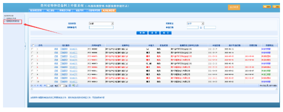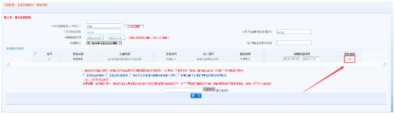 2)核對申報業(yè)務(wù)列表的設(shè)備信息并填寫預(yù)期檢測時間,如所選擇的設(shè)備不想在本次進行報檢,可點擊項目刪除列上的“刪除”按鈕移除對應(yīng)的設(shè)備。如下圖所示: