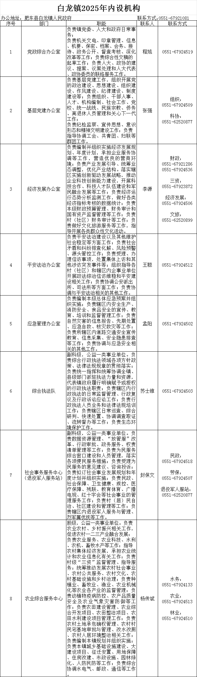 肥東縣白龍鎮(zhèn)政府各部門職責(zé)及聯(lián)系電話