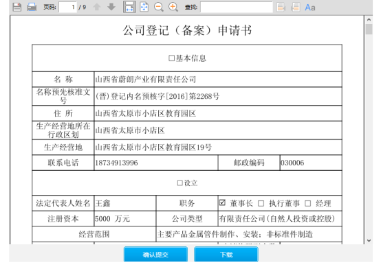 點擊【提交并預(yù)覽】,如圖41,點擊【確認提交】,等待工商人員審核