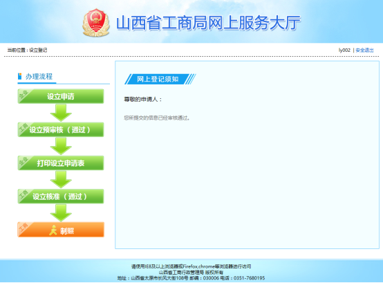 說明:全省名稱申請業(yè)務(wù)都可在山西省工商局網(wǎng)上服務(wù)大廳進行名稱填報申請,但設(shè)立登記業(yè)務(wù)只能是山西省工商行政管理局和運城市工商行政管理局進行網(wǎng)上設(shè)立登記業(yè)務(wù)。