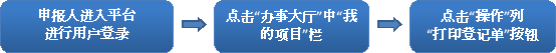 4、申報(bào)人同樣可以在“我的項(xiàng)目”欄中選擇要打印登記單的項(xiàng)目,在右側(cè)“操作”區(qū)域,點(diǎn)擊“打印登記單”按鈕,可下載或打印該項(xiàng)目的登記單。