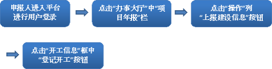 您在項(xiàng)目開工后需要將開工報(bào)告上傳到平臺(tái)。上傳界面既可以通過“辦事大廳”中“項(xiàng)目年報(bào)”子欄目進(jìn)入,也可直接點(diǎn)擊“辦事大廳”,通過“我的項(xiàng)目”信息框內(nèi)“上傳報(bào)告”進(jìn)入。