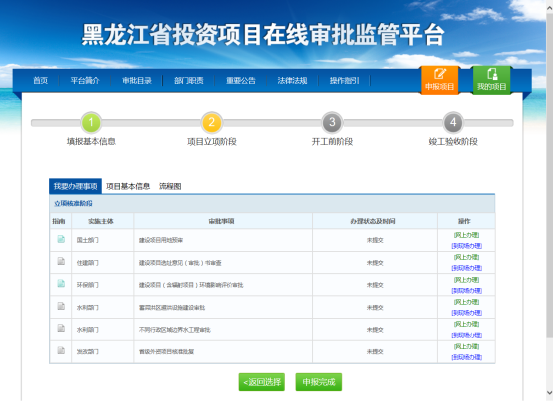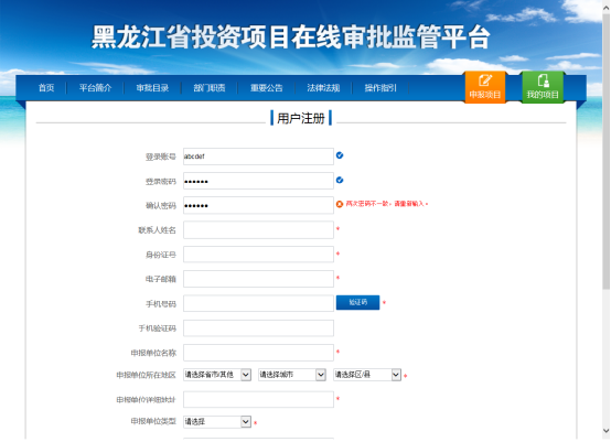 黑龍江省投資項(xiàng)目在線審批監(jiān)管平臺(tái)是建在黑龍江省內(nèi)投資建設(shè)的項(xiàng)目,從提出申請(qǐng)到開工建設(shè)過(guò)程中所涉及的主要審批事項(xiàng)和部門,按省、市、縣三個(gè)層級(jí)和行政區(qū)劃全部納入一個(gè)辦事大廳,實(shí)行“一窗受理、并聯(lián)辦理、限時(shí)辦結(jié)、信息共享”的網(wǎng)上聯(lián)合審批運(yùn)行模式,實(shí)現(xiàn)全省投資項(xiàng)目審批 “一網(wǎng)告知、一網(wǎng)受理、一網(wǎng)辦完、一網(wǎng)公開、一網(wǎng)監(jiān)管”,全程陽(yáng)光可預(yù)期的目標(biāo)。