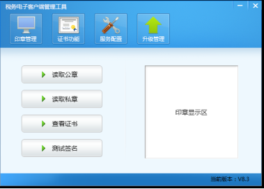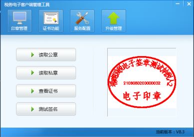 在服務(wù)配置無誤之后,可以通過“印章管理“模塊中的,”讀取公章“查看印章是否已經(jīng)可以使用