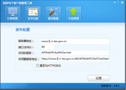 點(diǎn)擊”服務(wù)配置”,進(jìn)入服務(wù)配置頁面,服務(wù)地址相應(yīng)的配置信息已經(jīng),事先配置好,請(qǐng)勿修改。