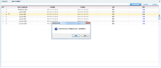 填寫表單,選擇會計制度名稱時,系統(tǒng)會自動查詢國地雙方備案歷史數(shù)據(jù),表單填寫完畢后,點擊【保存】按鈕,待頁面提示“操作成功!”后,點擊【確定】按鈕,表單內(nèi)容被保存。