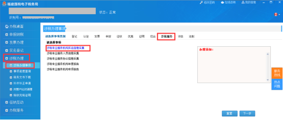 第一步:登錄電子稅務(wù)局-選擇【涉稅辦理】->【涉稅辦理事項】->【涉稅服務(wù)】->【涉稅專業(yè)服務(wù)機構(gòu)實名信息采集】