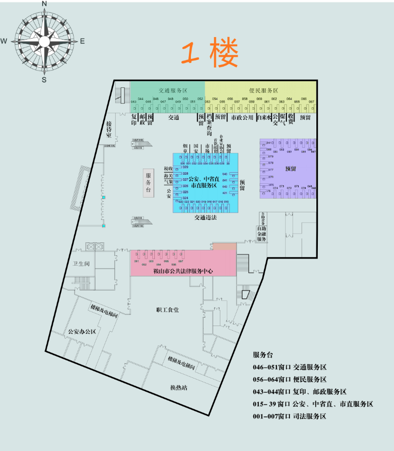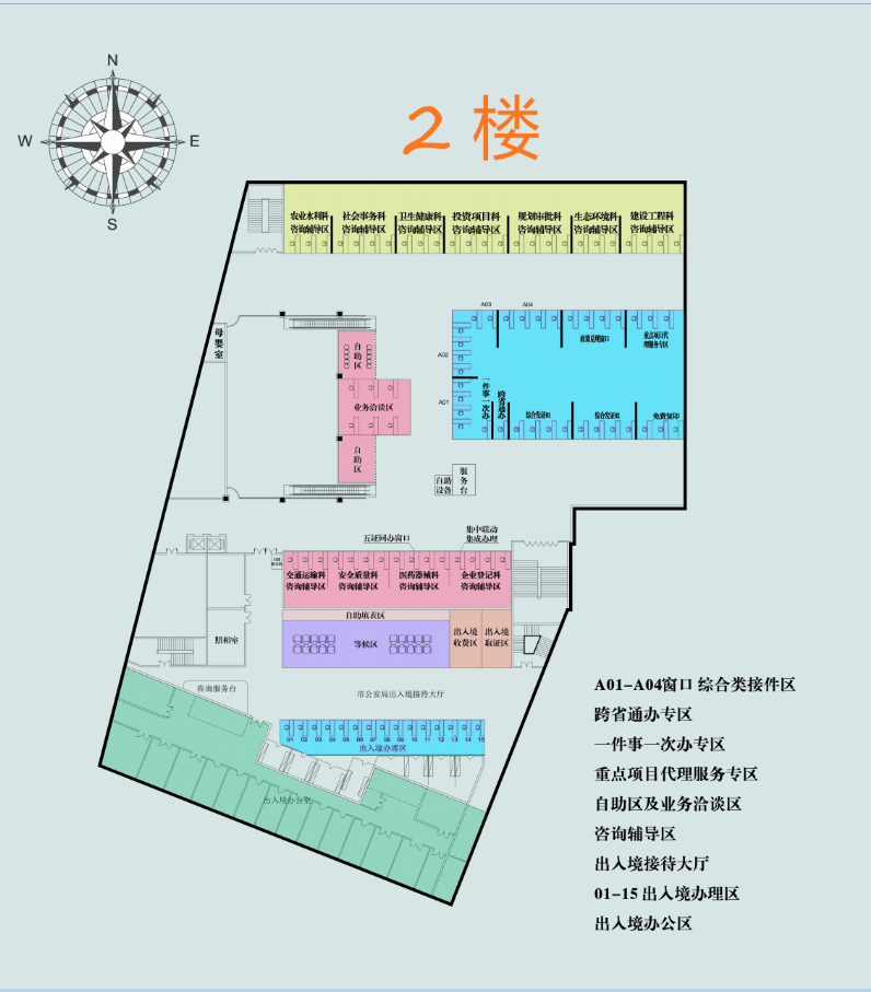 一層包括審批局的部分對外服務(wù)窗口: