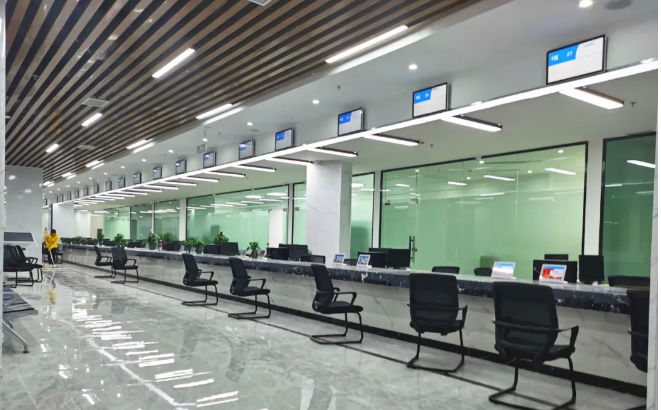 普安縣人民政府政務(wù)服務(wù)中心總占地面積3100平方米,中心大樓分二層, 大廳面積1000平方米。設(shè)常駐制部門17個,分廳4個,聯(lián)絡(luò)制部門11個,縣政務(wù)中心含大廳、政務(wù)服務(wù)中心辦公室、機房、會議室、檔案室、主任室、副主任室、停車場等。大廳配有視頻終端設(shè)備、空調(diào)系統(tǒng)、電子大屏幕、觸摸屏、電子監(jiān)控等設(shè)施。進駐大廳設(shè)有16個部門辦事窗口,統(tǒng)一配備電腦、打印機等辦公設(shè)備,并設(shè)專網(wǎng)。