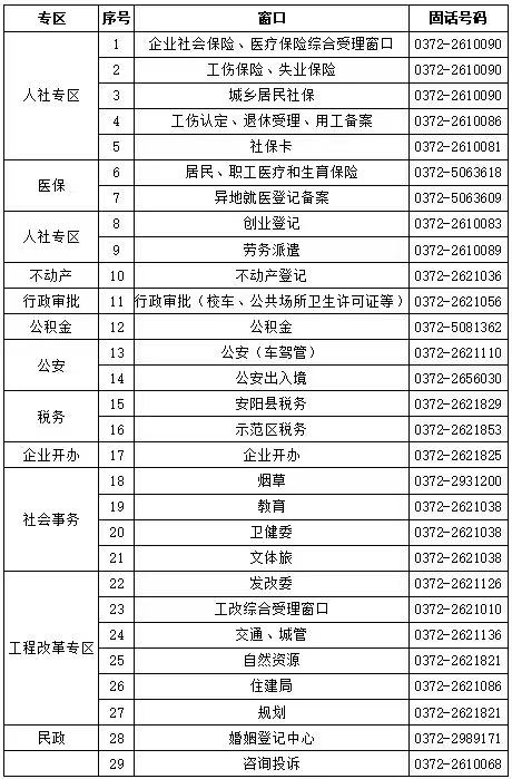 安陽縣政務(wù)服務(wù)和大數(shù)據(jù)局辦公室:0372—2621801;企業(yè)開辦(市場監(jiān)管)專區(qū):0372—2621825;不動產(chǎn)登記窗口:0372—2621036;公安局窗口:0372—2621110;