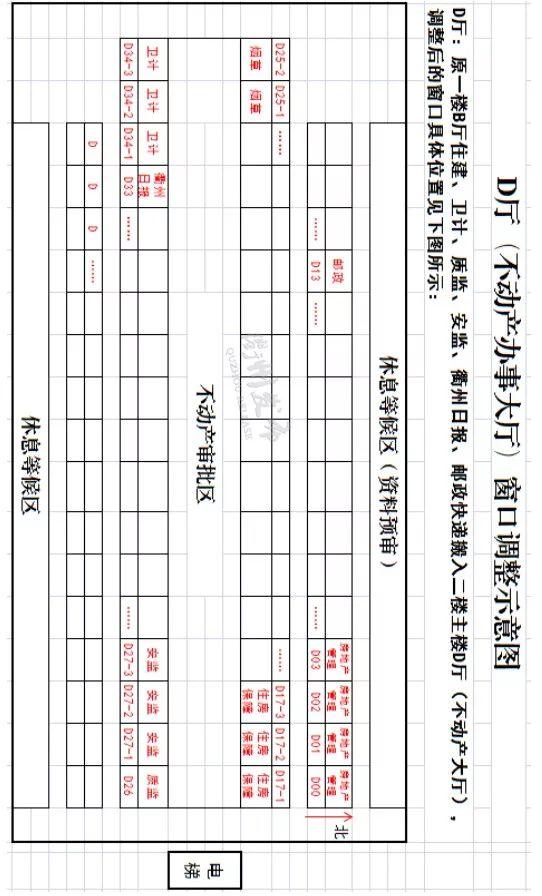 屆時(shí),原在B廳辦理的相關(guān)事項(xiàng)(主要有:國地稅聯(lián)合辦稅、交通相關(guān)業(yè)務(wù)、住建相關(guān)業(yè)務(wù)、衛(wèi)計(jì)相關(guān)業(yè)務(wù)、質(zhì)監(jiān)、安監(jiān)、煙草、商標(biāo)注冊(cè)、工商代理、刻章、衢州日?qǐng)?bào)、郵政快遞等)將分流至A廳(一樓副樓:法人辦事大廳)、D廳(二樓主樓:不動(dòng)產(chǎn)辦事大廳)、F廳(三樓主樓:公安辦事大廳)。