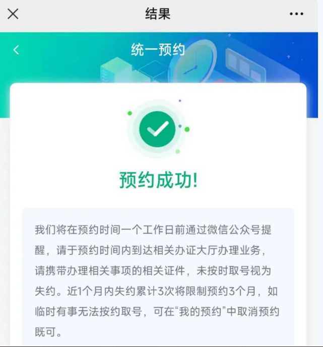 3.預約成功后,預約人需在預約時間內(nèi)攜帶身份證到叫號機取號,然后到相應窗口辦理業(yè)務,非預約時間內(nèi)無法取預約號;