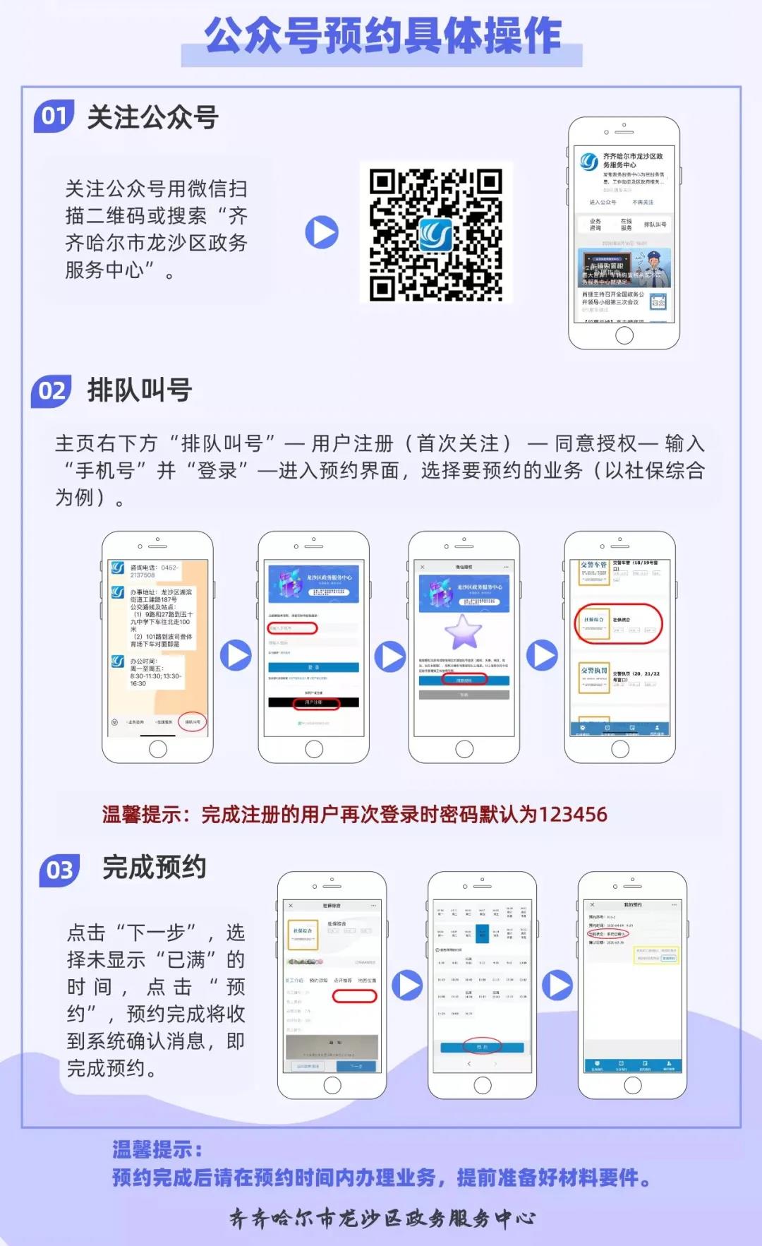 1.明日起(即2021年1月4日開始),龍沙區(qū)政務(wù)服務(wù)中心實(shí)體大廳窗口業(yè)務(wù)主要采取“微信公眾號預(yù)約”的辦理方式,先預(yù)約、后辦理(憑預(yù)約成功頁面進(jìn)入大廳)。