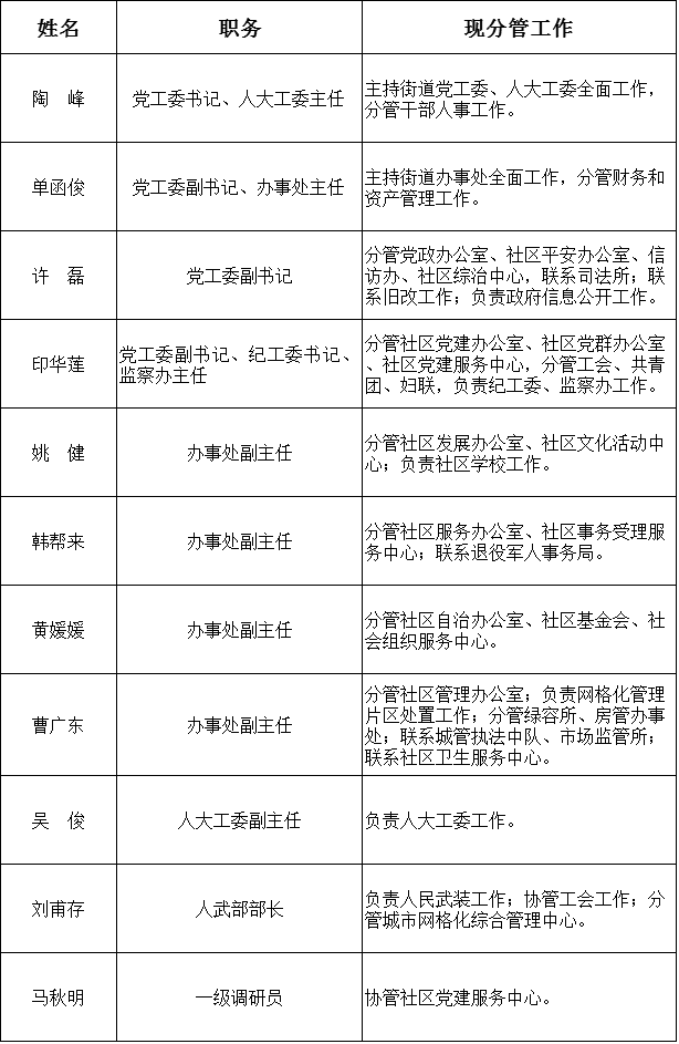 負(fù)責(zé)干部人事、人才和老干部工作;負(fù)責(zé)社區(qū)黨的建設(shè),開展區(qū)域化黨建、“兩新”組織黨建和居民區(qū)黨建工作;負(fù)責(zé)黨代表的聯(lián)絡(luò)和服務(wù)工作;負(fù)責(zé)社區(qū)工作者事務(wù)所的相關(guān)工作等。