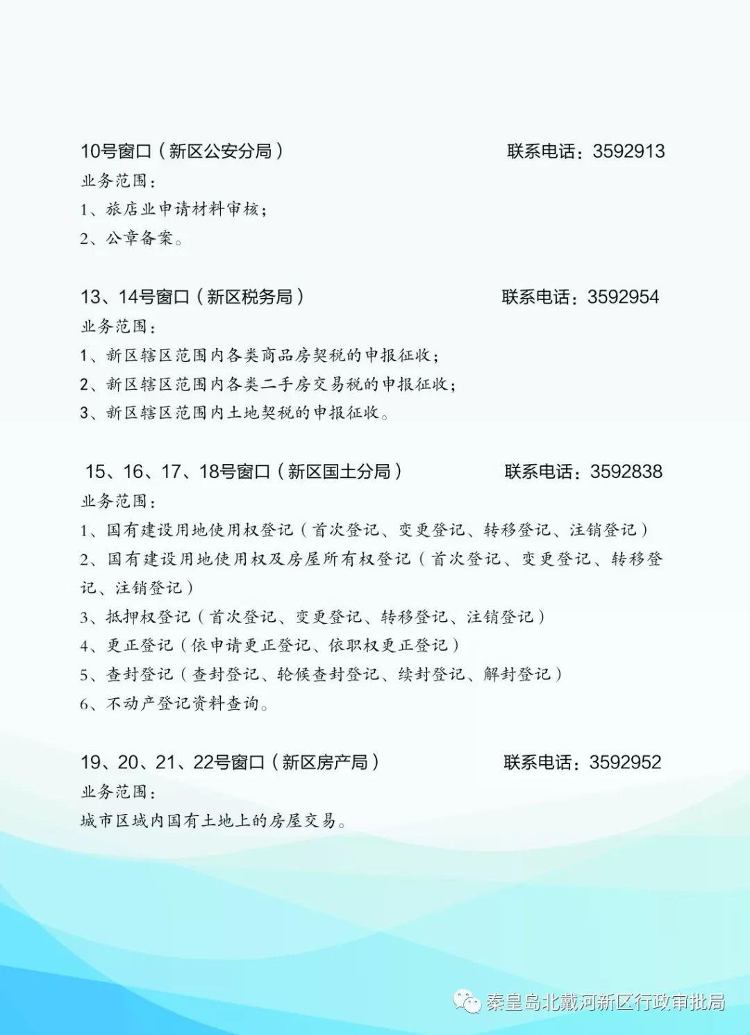 辦公地址:秦皇島市北戴河新區(qū)政務(wù)服務(wù)中心8號(hào)窗口(大蒲河碼頭以北)