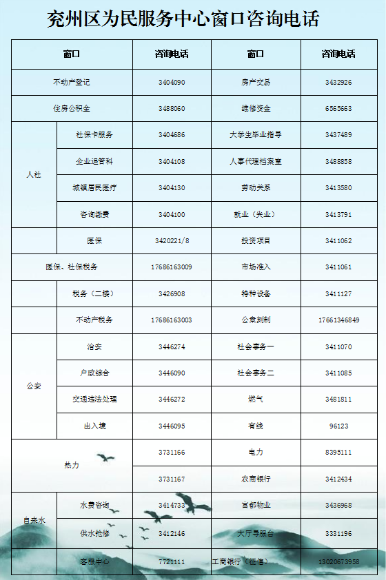 濟(jì)寧市兗州區(qū)政務(wù)服務(wù)中心辦事大廳窗口咨詢電話,兗州區(qū)科技局窗口咨詢電話:0537-3413872,兗州區(qū)工業(yè)和信息化局咨詢電話:0537-6593900,兗州區(qū)民政局聯(lián)系電話:0537-3413398
