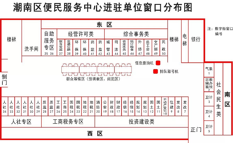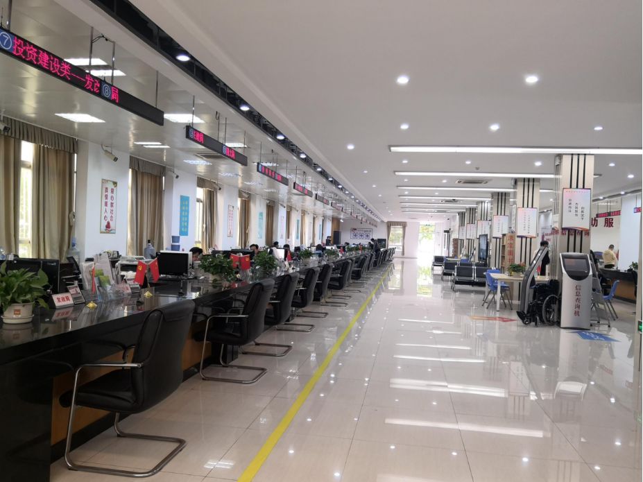 大廳現(xiàn)有開(kāi)放式服務(wù)窗口40個(gè),進(jìn)駐單位35個(gè)(包括供電局、自來(lái)水公司、刻章公司),進(jìn)駐事項(xiàng)632項(xiàng)(其中行政許可事項(xiàng)402項(xiàng),公共服務(wù)事項(xiàng)230項(xiàng))。按照進(jìn)駐單位和進(jìn)駐事項(xiàng)分類設(shè)置為“社會(huì)民生類專區(qū)”、“存量房交易及稅務(wù)專區(qū)”、“人社專區(qū)”、“投資建設(shè)類專區(qū)”、“開(kāi)辦企業(yè)專區(qū)”、“不動(dòng)產(chǎn)登記專區(qū)”等6大專區(qū)。各窗口分別配置服務(wù)必需辦公電腦、打印機(jī)、群眾評(píng)價(jià)器、證件高拍儀以及后臺(tái)高清視頻監(jiān)控等。