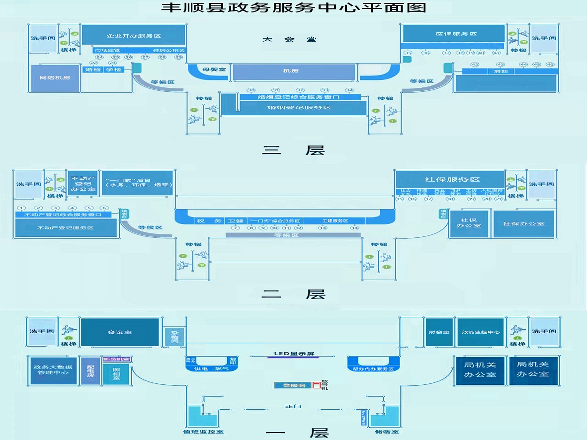 ?豐順縣綜合政務服務中心(以下簡稱“中心”)位于縣城湯坑鎮(zhèn)迎賓路豐順縣會展中心大樓前樓,使用面積2100平方米。中心由縣財政投資1080萬多元改建,于2013年5月底動工,10月中旬完工,10月31日正式掛牌運行。