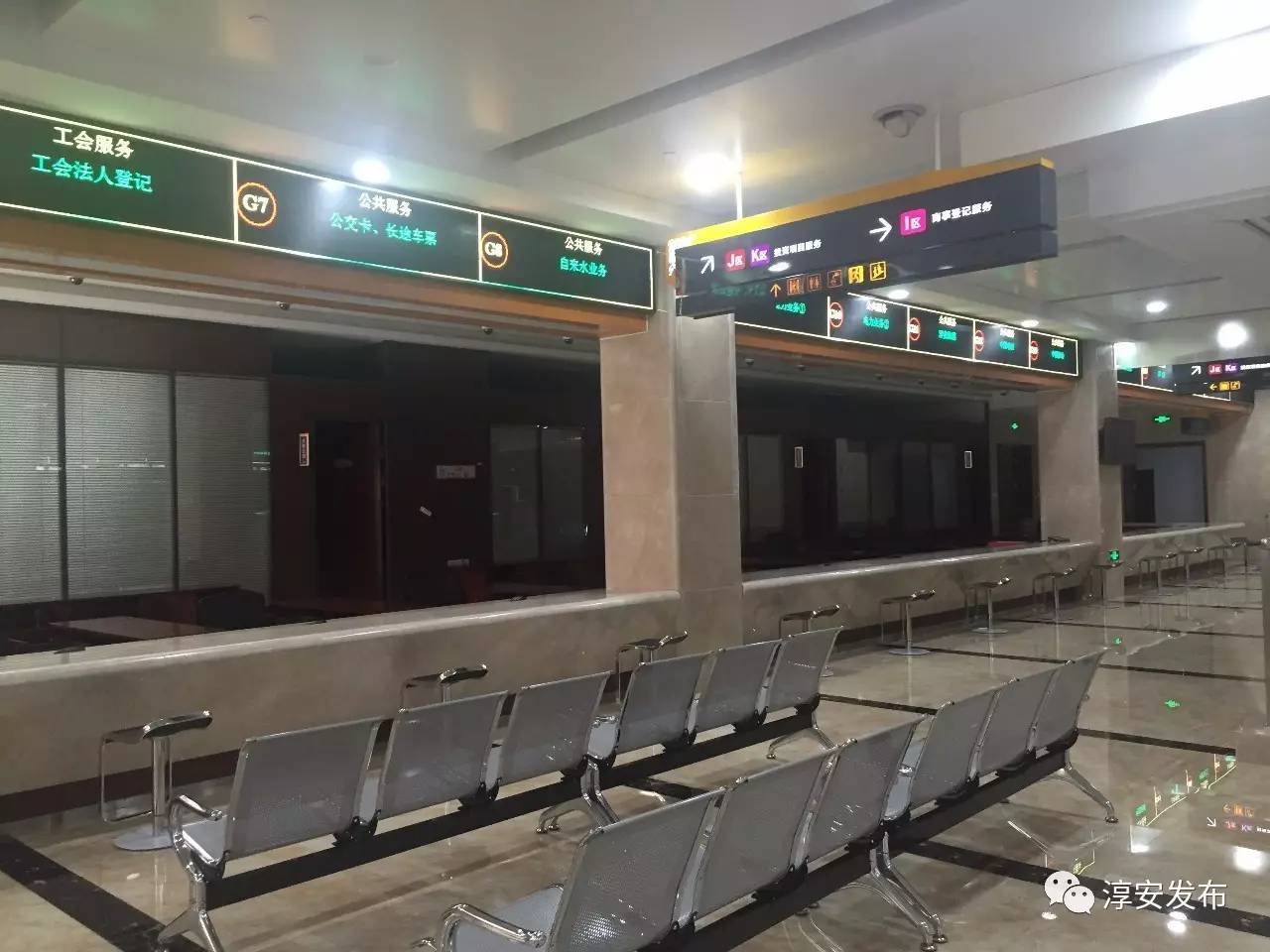 新行政服務(wù)中心是一個(gè)標(biāo)準(zhǔn)化、智能化、人性化的辦事大廳。黃邊灰底空心字——醒目的大樓導(dǎo)視系統(tǒng)引導(dǎo)辦事群眾快速、準(zhǔn)確找到辦事窗口。