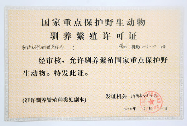 野生動(dòng)物馴養(yǎng)繁殖許可證