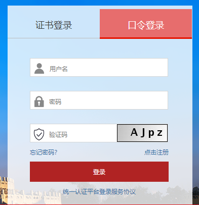 選擇口令登錄,輸入用戶名、密碼、驗(yàn)證碼點(diǎn)擊【登錄】