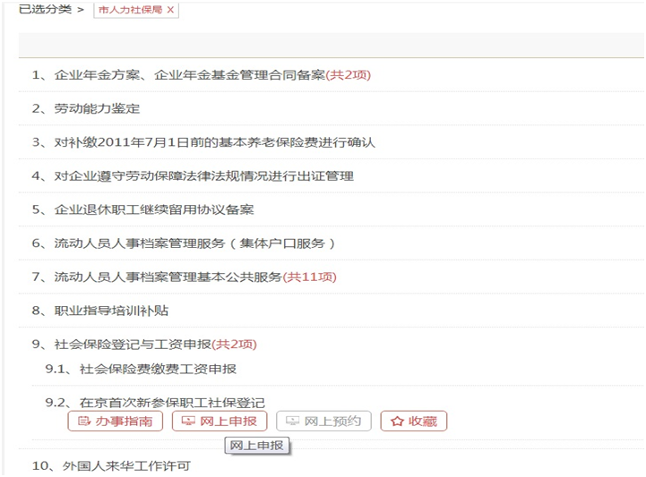3、選擇第9項(xiàng)的9.2“在京首次新參保職工社保登記”