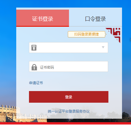 插入數(shù)字證書,輸入證書密碼,點(diǎn)擊【登錄】