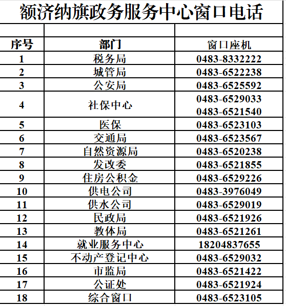 辦公地址:內(nèi)蒙古自治區(qū)額濟納旗達來呼布鎮(zhèn)市民中心(東風(fēng)路與土爾扈特街交匯口西南角),