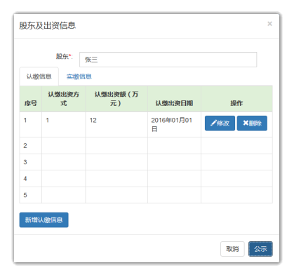 提示:股東出資信息提交公示后可以進(jìn)行修改或刪除操作,修改或刪除會(huì)生成相應(yīng)記錄。