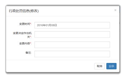 行政處罰信息在發(fā)生變更后需要添加相應(yīng)信息并公示。