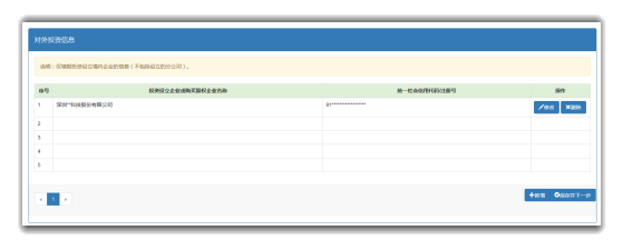 點(diǎn)擊“新增”按鈕,彈出編輯窗口。如實(shí)填寫(xiě)對(duì)外投資信息后點(diǎn)擊“保存”按鈕,保存成功后本頁(yè)面將自動(dòng)關(guān)閉。