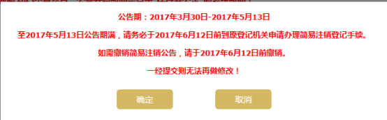 頁(yè)面可進(jìn)行簡(jiǎn)易注銷撤銷,一旦撤銷,不能再次進(jìn)行,請(qǐng)慎重