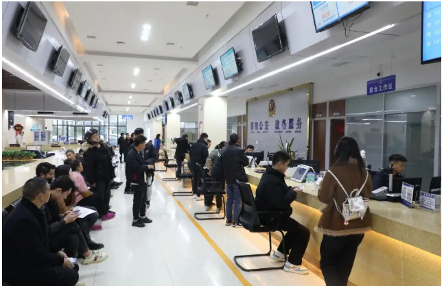 我縣政務(wù)服務(wù)新大樓共6層,主要分布情況如下:大樓負(fù)一樓為停車場,一至三樓均為政務(wù)大廳,四樓和五樓為配套功能用房。目前,進(jìn)駐政務(wù)大廳的部門有發(fā)改、住建、自然資源、環(huán)保等32家、進(jìn)駐水、電、氣、金融等企業(yè)10家,設(shè)置窗口131個(gè),預(yù)留窗口32個(gè),后臺(tái)審批服務(wù)辦公室61間,進(jìn)駐行政審批和公共服務(wù)事項(xiàng)508項(xiàng),進(jìn)駐人員有150人。一樓大廳主要辦理新農(nóng)合、社會(huì)保險(xiǎn)、交通、公安、用電、網(wǎng)絡(luò)、法律援助等業(yè)務(wù),設(shè)有57個(gè)窗口;二樓大廳主要辦理稅務(wù)、民政等業(yè)務(wù),設(shè)有24個(gè)窗口;三樓大廳主要辦理企業(yè)開辦、不動(dòng)產(chǎn)登記服務(wù)、立項(xiàng)備案等業(yè)務(wù),設(shè)有50個(gè)窗口。在一至三樓大門正前方均設(shè)有咨詢導(dǎo)辦臺(tái),主要提供咨詢、引導(dǎo)、協(xié)辦、幫辦、填表等免費(fèi)服務(wù);同時(shí),還在窗口開展“集成套餐”“不見面審批”“一窗通辦”“延時(shí)服務(wù)”“預(yù)約服務(wù)”等特色服務(wù)。一至三樓政務(wù)大廳利用智能化,建設(shè)有刷臉排隊(duì)取號(hào)系統(tǒng)、信息發(fā)布系統(tǒng)、評(píng)價(jià)系統(tǒng)等,讓辦事企業(yè)和群眾深切感受到科技帶來的方便和快捷;一至三樓政務(wù)大廳設(shè)有自助查詢區(qū)、自助辦理區(qū)、母嬰室、閱覽室、茶水間等功能用房;一至三樓廁所均設(shè)有第三衛(wèi)生間,特別是一樓衛(wèi)生間按照3A級(jí)旅游廁所標(biāo)準(zhǔn)規(guī)范修建。總之,我縣政務(wù)大廳所有工作人員將竭盡所能最大限度地滿足辦事企業(yè)和群眾的需求。