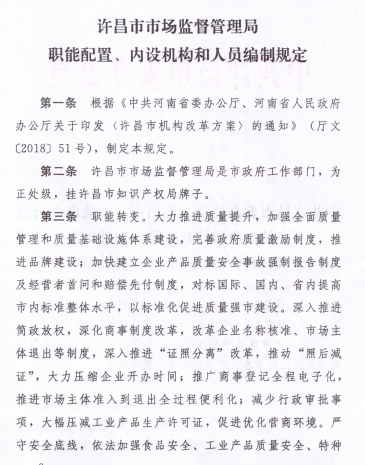 2020年5月22日上午9時(shí),許昌市市場監(jiān)督管理局魏都區(qū)分局舉行成立掛牌儀式。魏都區(qū)市場監(jiān)管系統(tǒng)將以改革為契機(jī),履職盡責(zé)、恪盡職守,始終堅(jiān)持圍繞中心、服務(wù)大局的工作宗旨,堅(jiān)決貫徹市委市政府、區(qū)委區(qū)政府和市局黨組關(guān)于市場監(jiān)督管理的方針政策和決策部署,不折不扣落實(shí)好上級確定的機(jī)構(gòu)改革方案,切實(shí)提高全區(qū)市場監(jiān)管水平。