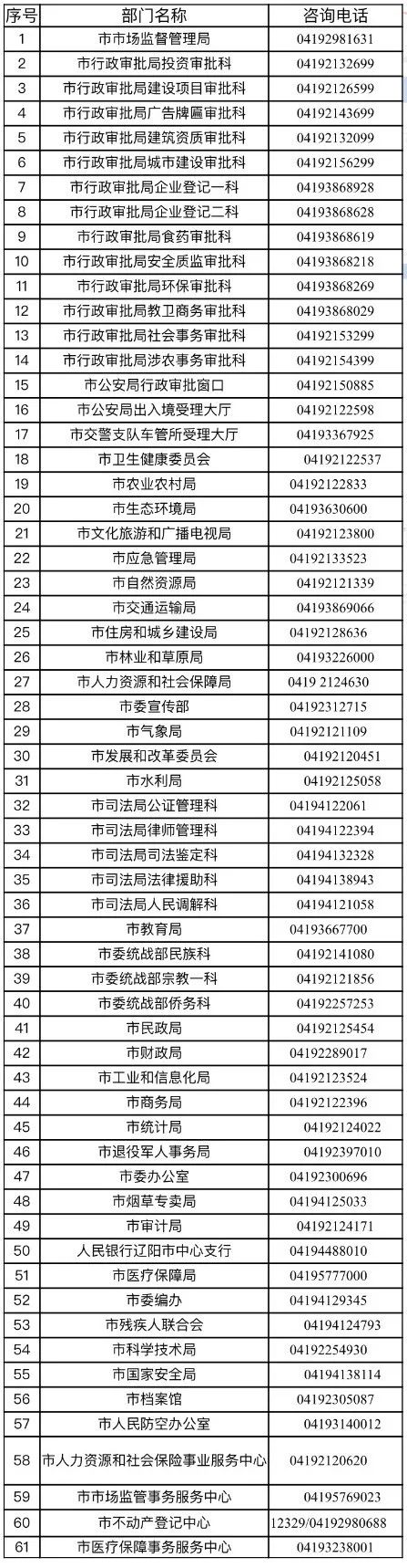 遼陽市政務(wù)服務(wù)部門業(yè)務(wù)咨詢電話