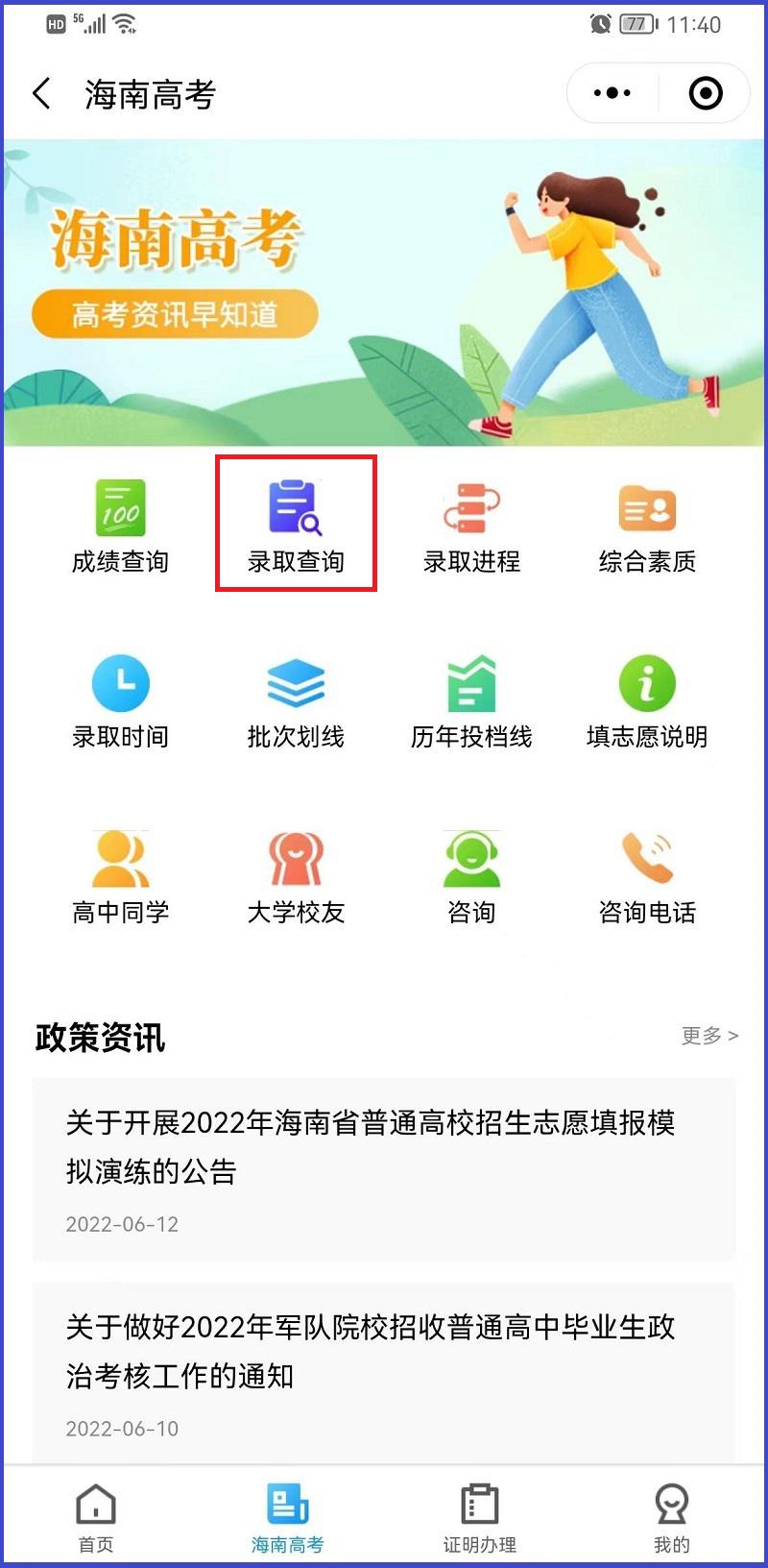 考生可通過海易辦APP、微信或支付寶小程序登錄“海易辦”平臺,點擊“海南考試服務(wù)”->“海南高考”,進(jìn)入“錄取查詢”模塊查詢。