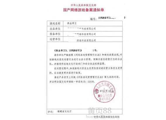 游戲出版?zhèn)浒甘窃趪?guó)家的新聞出版總署申請(qǐng)的。
