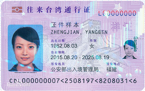 《大陸居民往來臺(tái)灣通行證》,是中國(guó)大陸地區(qū)居民往來中國(guó)臺(tái)灣地區(qū)所持有的證件,一般與《入臺(tái)證》一起檢查。從2015年7月1日起《大陸居民往來臺(tái)灣通行證》的有效期由原來的五年改為10年。
