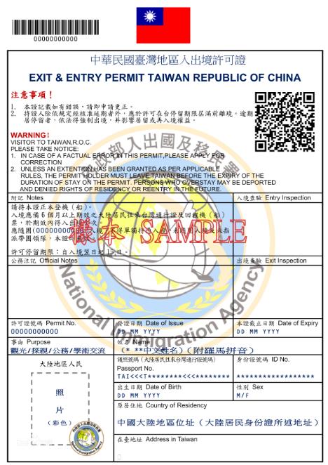 兩岸同屬一個(gè)中國(guó),大陸地區(qū)不可以護(hù)照簽證形式進(jìn)入臺(tái)灣地區(qū)。故由臺(tái)灣地區(qū)內(nèi)政部發(fā)給大陸地區(qū)及港澳地區(qū)居民該證件用以出入臺(tái)灣地區(qū)。大陸居民需與《大陸居民往來(lái)臺(tái)灣通行證》,港澳地區(qū)居民需與相應(yīng)護(hù)照一并查驗(yàn)。