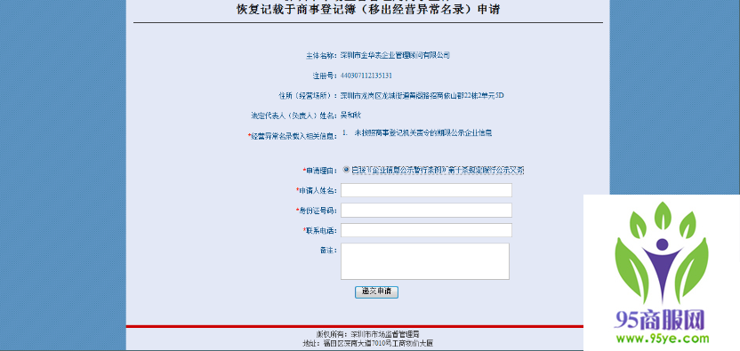 ● 深圳市網(wǎng)上申請移出經(jīng)營異常名錄入口